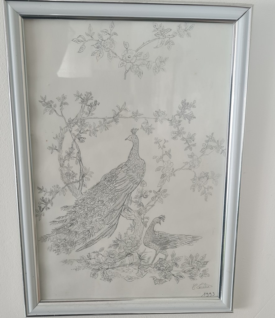 À l’âge de 11 ans, je reproduisis au crayon de bois deux paons présents sur un beau vase qui était dans le salon de la maison familiale. Ce dessin fut le début d’un apprentissage auprès de Mme Marie-France DELEFLIE, institutrice retraitée et ancienne maire d’Annezin, et M. LEPLAT (peintre), que je remercie chaleureusement pour ces samedis après midi bénévoles. Apprentissages au dessin et à la peinture, ma maman avait perçu un petit potentiel à me faire développer. J’étais un enfant « hyperactif ». Dessiner me canalisait.